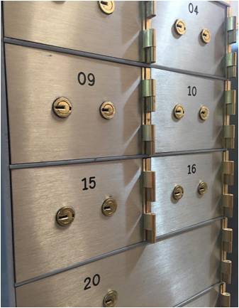 Cada compartimiento cuenta con un cofre guarda valores, los módulos pueden construirse con puertas de 100 x 150 mm | 100 x 300 mm | 200 x 300mm.